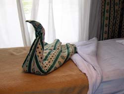アスワンからルクソールまで乗ったクルーズ船のベッドメイク。芸の細かさに爆笑。毛布といえども海外からのお客様をお迎えする小さな大使として品格は大切に!首はあくまでもピンと優雅に立てて!