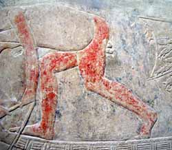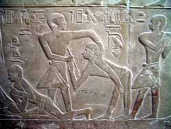 サッカラ・古王国時代のマスタバ墳内にあったレリーフ。誰の墓だったかはメモ紛失で今ちょっと分からない(いい加減だな・・・)少なくともチイやメレルカなど有名どころの墓ではなかったのは確かだ。