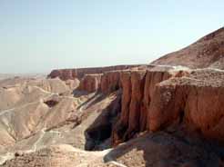 私が原作で最も好きなシーンはコミックス35巻、「ハゲの王を捜して三千里」。 よって王家の谷は古代エジプト人みならず、シャダマニアの現代日本人にとってもある意味聖域。 崖はこのようにけっこう角度的にデンジャラーなもんで、万一足をすべらせようものなら損保会社のお世話になること必至。