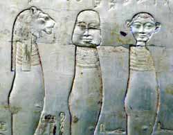 ![]() 則巻センベエもびっくりなこの巨顔は、ツタンカーメンの第二の厨子に彫られた冥界の番人。 第一印象はギャグだがじっと見るとさすが番人、けっこう怖い・・・ひぃいっ!こっち見ないでよおっ! <カイロ博物館> |