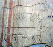 ![]() トホホ〜〜!こっちも下手すぎて泣けてくるよなぁ!こんな絵ならいっそ描くなと言うのは酷というものだろうか? 絵を描き慣れない人が四つ足動物を描くとよくやる足の描き方の間違いは、二千年も昔からちっとも変わっちゃいないようだな。それにしても下の犬の腹についているものはいったい何?いぼ?それともチ○コ? |