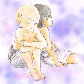 ![]() メ、メルヘンやのぉ〜!!vBGMはビージーズの「小さな恋のメロディー」ですね。 そしてさとみさんのカリシャダ象も伺ってみました。↓ いや、武士?格式高い武家の生まれだが、落ちぶれてしまって浪人の身。 しかし、落ちぶれても元・上流家庭(びんぼっちゃま?) 自らの体に流れる血を誇りとし生きる男〜をエジプト変換で。 彼は絶対無口だと思います。口ではなく、目で訴えるのです。 表情もあまり変化しないような。行動で全てを語る。 頭は良い方だと思いますが案外抜けていて、そこがスキになってライバルに出し抜かれてそう・・・。 神官団の中で、一番逞しいのはカリムですが、肉体的に一番頼りないのはシャダかなー。 実は、アイシスの方が力持ちだったりして。 正義感の強いシャダが弱いなりに庇ってたり。 カリムはそんなシャダに『いじらしい』と胸キュン、一目ぼれ。 シャダは、自分にも「オレがいなきゃダメなんだ」って相手が見つかって(大いなる勘違いです。 シャダに庇われなくてもカリムは大丈夫なのですが)常にカリムにくっついてます。 無駄な事は一切語らないカリムに、勘違いし続けるシャダ。 おお、なんかシャダがアホの子だ。すみません・・・。 絵を描いてるときは「声変わりが遅くて悩むシャダ」だったのですが、 それプラス「今日は、なんとかカリムを守れたぞ。明日はどうなるんだろう(ドキドキ)」 と不安な子シャダ。その隣で、神経のぶっといカリムは豪快に居眠り。 夢の中で、頑張るシャダに萌えている・・・とか。 内気そうなシャダが愛らしいです。お姐さんが守ってあげたいわぁv |