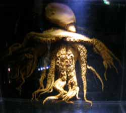 ファンタスティックエイティーファイブ。 伊勢湾で網にかかり、昭和32年には上野国立博物館に貸し出され、昭和天皇も興味深くご覧になり「天覧標本」として話題になったという85本足のマダコ。 マダコの多足化は、損傷を受けた組織の再生異常に起因すると考えられているそうだが、8本の足が85本に増えるまで何度も損傷を受けながらなお生き延びただなんて・・・ |