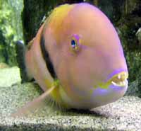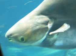 ![]() 「アマゾン館」にいた魚。ユーモラスなブタ鼻のくせに見る者の笑いを凍り付かせるアンタッチャブルなムードが漂う。コロンビアかチェチェン・マフィアの幹部にこういうヒト、きっといると思う。 |