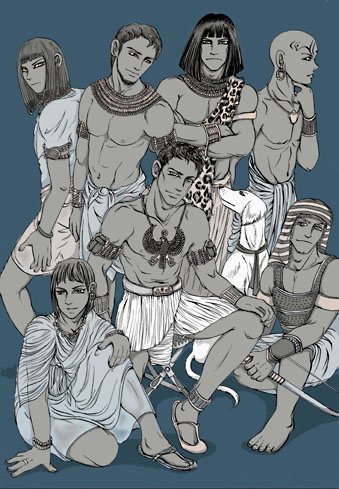 「エジプト萌え萌えWALKER」の裏表紙絵。実在とフィクションのエジプト人たち。