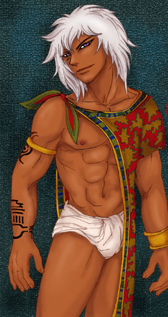 私的にはバクラは異国の血が濃いと思ってるので、外国風の衣装を着てもらいました。