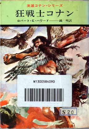 武部本一郎氏によるハヤカワ版コナンの表紙。 死んでると思ってつっつきに来たハゲタカに、逆に食らいついて血をすするの図。さすが狂戦士!だが、こんなシーン、表紙にするか?フツー。(笑) 改訂版の表紙と比べると、その濃ゆさにおいて、笠智衆とアントニオ・バンデラス、ウイリアム王子とチェ・ゲバラくらいの開きがある。こりゃ、昔からのコナンファンが改訂版の表紙に怒るはずだ…… なお、バーコート付きなのは図書館で借りてきた本だからです。地元の古本屋で探しているが、創元社版はもちろんのこと、ハヤカワ版(絶版)ですらまだ一冊たりとも見つからず、あせり始めた今日この頃。 |