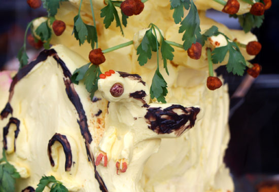 死にかけの木の下で小首をかしげる、シカ……だろうか? アイスはデコレーションに適さないことだけはよーく分かった。
