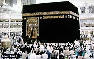 ![]() 世界16億人の教徒の崇敬を集めるカーバ神殿。テレビ画面を通してもものすごいオーラが伝わってくるようで、なんだか見てはならないものを見てしまった気分になった。 |