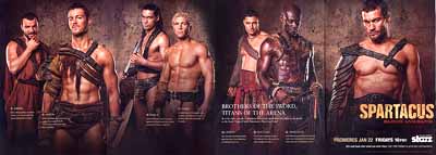 2010年2月7日(日) ![]() 海の向こうからシルバーの封筒に包まれて届いたばかりの"OUT"を開くと同時に、野獣のような咆哮が口をついて飛び出した。 ケダモノ臭くて当然。こいつは"SPARTACUSーBLOOD AND SAND"の広告だ。おお!「グラディエイター」「300」に続き中心気圧940ヘクトパスカルの巨大ハリケーンが今、古代萌えゲイ&腐女子に襲いかかるのか!? 「スパルタカス」といえばスタンリー・キューブリック監督、カーク・ダグラス主演の映画(1960年製作)が有名よね。 となるとこの映画も凛々しき主人公スパルタカス(一番右)が、アグロン(左から2人目。ローマに捕らわれたゲルマン戦士。タ・イ・プv)やヴァーロ(左から4人目。ギャンブルの負けを支払うために剣闘士に。スパルタカスの「親友」。グヘヘ)らと共にドクトゥール(右から二人目。元エリート剣闘士、今教官)やブタのように肥え太った貴族どもに立ち向かう、強く逞しくそして暑苦しい作品なんだろうなぁ・・・・・・。 "BROTHERS OF THE SWORD, TITANS OF THE ARENA"、なーんて美味しいコピーに胸ざわつかせつつ、心はすでに時空を越えて、来年夏のビッグサイト・映画&洋ドラスペースへと・・・・・・。カップリング的にはアグロンxスパルタカスでいっちょ夜露死苦! しかしちょっと待てよ?この広告、配給会社が書いてない。STARZってのがそれっぽいけど、「STARZをオーダーしたら25ドルのキャッシュバック!」とあるあたりちょっぴりあやしげ。 どうだろう、こういうタイプのテレビシリーズって、日本ではDVD化されそうだろうか?洋ドラファンの皆様、どう思われます? とは言いつつも、嬉しいことにここ ttp://www.themovienetwork.ca/series/spartacus/で第一話が見られるそうなので、動画がサクサク見られる羨ましいネット環境の方は視聴の上、化石的OSのせいでようつべさえマトモに見られない哀れな管理人に、ぜひとも感想をお知らせ下され。 |