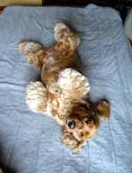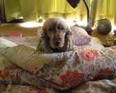 「マヤちゃんを店の前につないで待たせてたら、後ろにあるチューリップだけが揺れてるねん。なんでかなーと思ったら、マヤのしっぽが巻き起こす風のせいだったよ」と犬と一緒に買い物から帰ってきたヘボピー。メルヒェンやなぁ〜! コッカースパニエルは生まれてすぐに断尾(しっぽを切ること)するせいで、お尻にはポークビッツみたいな短いしっぽがちょこんとついてるだけなんだけど、これがまた笑っちゃうほどよく動くんだよねえ。しっぽ扇風機の風でチューリップを揺らすくらい、お茶の子さいさいだ。 ドーベルマンやグレートデンのように、アメリカや日本では断耳(耳を切ってキリッと立たせること)をする犬種でも、ヨーロッパでは「美観上の理由だけで犬の耳を切るのは動物愛護精神に反する」ので断耳はダメ。 そんな国でも、断尾は廃止にしていない。 たしかにマヤを見ていると、スパニエルやテリアの仲間といった断尾する犬種にとっては、「ムチと化した自分のしっぽでケガをする」という、「そんなアホな」と言いたくなることも起きかねない。それほどまでにスパニエル犬のしっぽは表情豊かなのだ。 嬉しい時にピコピコピコピコ・・・・・・と振るスピードは、「そりゃしっぽ回りの筋肉も鍛えられて、催眠効果満点のプリケツにもなるわなあ!」としみじみ感心するほど。 寝ている時に話しかけても、ちゃんとピコ・・・・・・ピコ・・・ピコ・・・・・・と夢のお国からお愛想。 だから私はいつも犬がいたずらをしたら、どれだけピコピコしようとも、怒った顔をしてしっぽを観察するのだ。ま、あまり追い込むと、しまいには逆ギレして「うー」と白目をむきだすので、手加減も必要なんだけどね。 しっぽ一つ取っても、ピコピコピコピコ!に対してクールで独立心の強いサルーキは、ふぁさっ、ふぁさっ・・・・・・とクレオパトラをあおぐ扇っぽい。それもコッカーみたいに身もだえして喜ぶことはせず、挨拶が終われば何事もなかったように、すました顔で自分の席に帰って行ったものだ。 また、犬たちがそれぞれの先祖から受け継いだクセのようなものを見るにつけ、遺伝ってすごいもんだなーと思う。 反対にコッカーはあきれるほど上を見ない。代わりに地面の上にあるものを見つけて、喜々としてくわえて運んでゆく。きっと主人が撃ち落としたシギ(コッカー)を運ぶ先祖の記憶がなせるわざだろう。 ダックスフンドはアナグマを追って地下にもぐっていたせいで、教えなくても一心不乱で毛布に穴を掘るマネをするらしいし、ラブラドールやゴールデン・レトリーバーは、川に飛び込んで主人の撃った鳥を運んだせいか、水と見ると発作的に飛び込んでしまうと聞く。 そして友人のボーダーコリーなんか、はぐれた羊を群に戻す、という牧羊犬の血がよみがえったのだろう、道路に飛び出しそうになった子供を全身で止めて車から守ったらしいからびっくりだ。 そんなこんなで早いものでマヤももう7才。母がアルツハイマーを発病する数ヶ月前にうちにやってきた赤ちゃんがもう7才とは、時は矢のように飛んでいくものだ。 今は元気なこの犬もだんだん衰えて、長くてもあと6、7年で去ってゆくのかと思うと、いきもののはかなさを感じてたまらなく寂しくなる。 せめて生きている限りはできるだけ可愛がってやるからね、とまじめくさった顔をしてご飯ちゃわんの前でスタンばっている犬に話しかけるのだった。 まじめな顔でおすわりするのはいいけれど、口の回りにさっき飲んだミルクがついたままですよ。 |