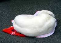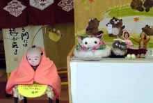 呉服屋さんにて。福助、あったかそうv隣のフクロウの包まれっぷりからしても、店主はあったかい心の持ち主と見た。いや、単になんでも包まないと気が済まない人かもしれないけど。