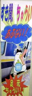 JR西日本の駅員さんが作った「すき間、ちゅうい」に対して、東のこちらはプロのデザイナーが生み出した落ち着きのない作品。東京メトロ車内にて捕獲。