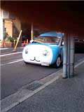 出勤途中に遭遇したダイキン工業の「ぴちょん君カー」。(ぴちょん君だよね?)たまたまポケットに携帯を入れていたのですれちがいざまに撮影できたものの、あわてすぎてモロに指、写ってます。