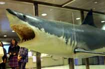 へんてこな嗜好を持つ人々のため、屋上を開放している施設のエントランスには、なぜか巨大なホオジロザメのはくせいが。