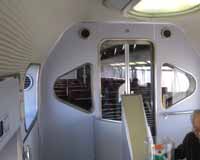 SFチックな近鉄特急(伊勢志摩ライナー?)の車内。二階建てで眺望グッド。窓から駅のホームにうごめく人々を見おろすと、急に自分が偉くなったみたいな気分になれる。