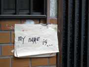 家の前を通る人々に、"my name is・・・?"と問いかけて答えられない奴は食い殺す、いわばスフィンクス的な意味合い?と思ったら、友人いわく「いや、YAZAWAじゃないっスかねー」。もし矢沢語録からの引用だとしても、玄関先にこれを貼った住人の意図するところはやはり謎。