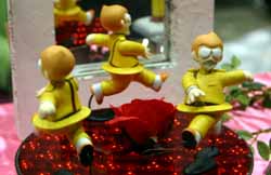 うーむ、ペルシャ絨毯とトルコタイルと大理石のテーブルで、慎重かつ大胆にイスラム風味を演出した我が家のインテリアに、こんなキャラぬいぐるみが似合うわきゃないよね。