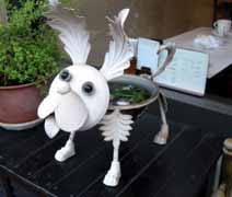 背中の水盤には水草なんぞを浮かべており、不気味さがいっそうパワーアップしている。金属を薄くのばして作った耳も、下手に触ると手を切りそうで危険きわまりない。