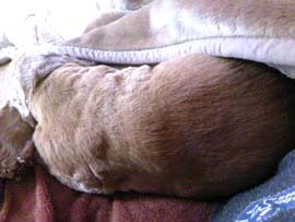マヤが更なる進化を遂げた。より狡猾に、冒険的に・・・・・・。 4月11日の日記★に書いたように、横開きの戸棚をすぅ──っと開けるあたりで進化も打ち止めかと安堵していたある日、引き出しに入れていたかつおぶしが台所中に散乱していた。 きちんと閉まっているとさすがに無理ながら、ちょっとしたすき間を見つけるや背伸びして裏側にお手手を差し込み、力をこめて引っ張り出すらしい。 部屋に入ってかつおぶしの残骸を発見、「あぁ──っ!」と叫んだら、さっきまでピコピコふっていた尻尾の動きがぴたりと止まり、目をそむけてすっ、と隠れたから、悪いことをしてる自覚はたっぷりとあるらしい。 それでも、バリバリに引き裂かれた証拠品を目の前に突きつけると「うううー」と逆ギレしやがったので、犯人をそれ以上追いつめるのは諦めた。だって噛まれたら痛いもん。