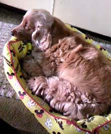 2013年2月2日(土) 実家で早々に布団に入り、ヘボピーが台所でなにかをガチャガチャいわせる音を聞きながらうとうとしていると、いつものようにマヤが布団にもぐりこんできた。 「マヤの頭が濡れてるけどどうしたん?!」と聞いたところヘボピーが手をすべらせて、どん兵衛のカップをマヤの頭からぶちまけたらしい。おおおおおお!! それでもかぶった当人は全くひるまず、ものすごいスピードで床にちらばったうどんをむさぼり食ったそうだ。さすがマヤちゃん、ぬかりないワン!(=´ω`=)
