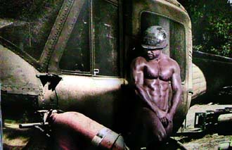 こちらは自動車修理工。この手の写真が好きな人々(含む私)の好きなものよくご存じで。