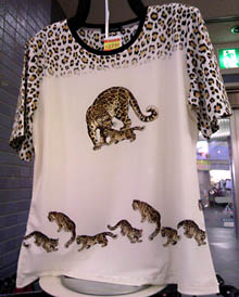 このヒョウたちが生息するのは動物図鑑と思いきや、下町のオバちゃんショップで一押しディスプレイされているシャツの中。