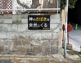 角を曲がるといきなりこの看板。いつ何時さばかれてもいいように、サバイバルツールをバッグに入れておこう!