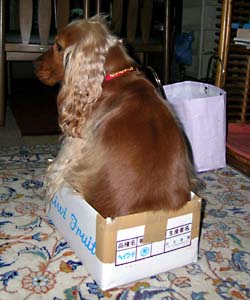 箱を見せると何はともあれ一度は入ってみようとする欲望はネコにしかないと思っていたのだが、太った猟犬にもあるらしい。
