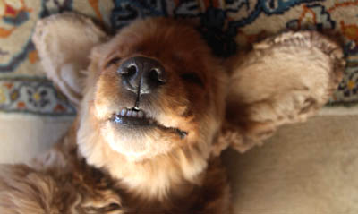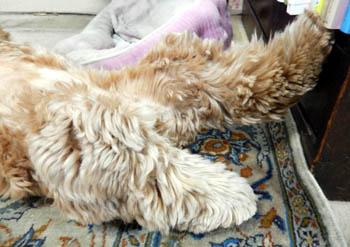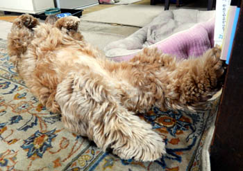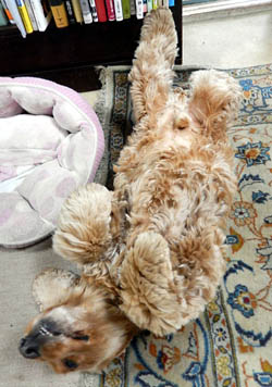 朝起きて隣の部屋に行くと犬がへそ天でフリーズしていた。