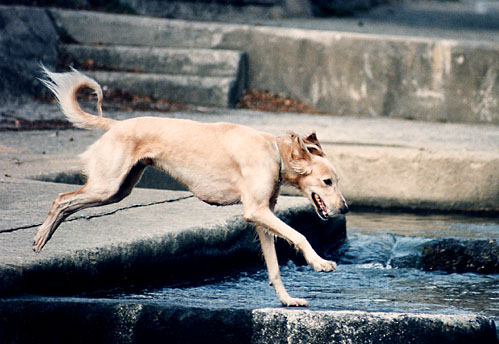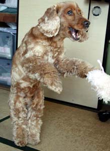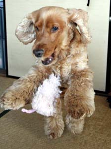 自分的にはジャンプのつもりでしょうが、ちっとも宙に浮いていません。これでは「立ち犬」です。