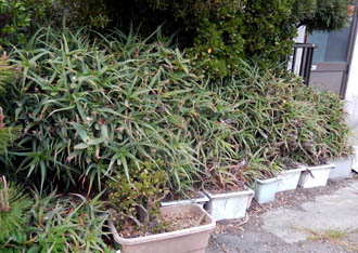 アロエに浸食されつつある家。やけどの治療に使うにしてもちょっと多すぎないか。