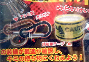 派手なグッズにひっそりと紛れ込んだ「アルミ製カラビナ」……。んなもんママに頼んでダイソーで買ってきてもらいなさい。