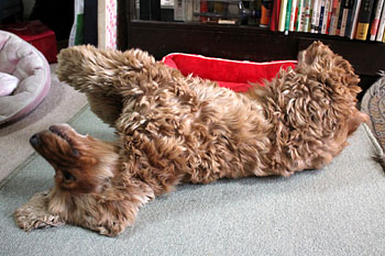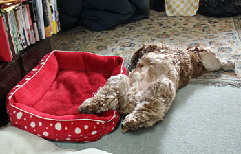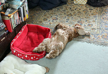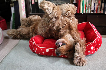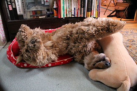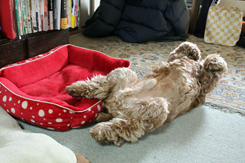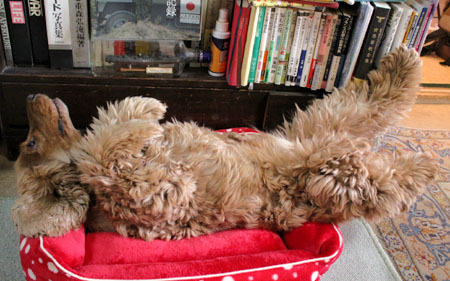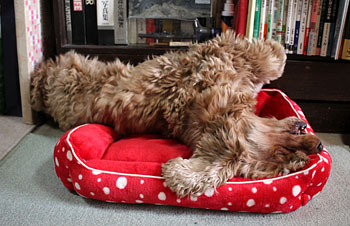 2015年12月3日(木) ![]() おねえちゃんたちが「ぴんくさん」と呼ぶこのベッドを、マヤちゃんはとても気に入っていました。 マヤちゃんがせっせと使ったピンクのベッドも、すっかりよごれてまっ黒になりました。 ぺたんこの古いベッド。だというのにおねえちゃんは新しいベッドをくれません。なぜでしょう? だから、おじいちゃんワンちゃんが新しいベッドをもらったとしても、ほんの短いあいだしか使うことができないかもしれません。 ![]() 赤いすてきなベッドにのびのびとねているではありませんか。 「マヤちゃんはおじいちゃんにしてはとても元気ですね。15才くらいまでがんばって生きてくれるかもしれませんね」 だからおねえちゃんはまっくろくろすけの「ぴんくさん」を、やっと捨てる気持ちになったのです。