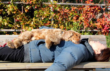 2016年4月20日(水) 風呂からあがったヘボピーが「不思議なことがあった」と言う。なんでも風呂の中で「ぐるーっぐるーっ ぽっぽっ ぐるーっぐるーっ ぽっぽっ」とキジバトの鳴き声が聞こえたというのだ。 そういえば私もちょっと前に風呂に入っていたら、「ぶぅう────っ ぶうぅ────っ」とすぐそばで寝ているみたいな大きなマヤのいびきが聞こえたから、「えっ?風呂の前で寝てるの?ありえない!脳溢血で倒れでもしたか?」と風呂を飛び出したことがあったわ。(犬は風呂から離れた部屋にいました) うーむ、なにか不思議な現象が起きて、風呂と外の空間がどこでもドアで繋がったとでもいうのだろうか……(笑)。「それにしてもぐるっぽ!(笑)」「マヤのいびき!(笑)」 ハトと犬のいびきではミステリアスにはほど遠い。 ちょっと不思議といえば、「テレパシーってほんとにあるのかも」と思い始めた今日このごろ。 けれど相手がヨガ教師でも坊さんでもないヘボピーだとちょっと驚く。 それは「ミツバチの巣」と「グリフォン」のヴィジョンを見たのと同じ日の夜中のこと。 以前も30年ほど前に飼っていた猫の夢を私とヘボ、同時に見ていたことだし、思念は言葉を排しても伝わるものなのかもしれない。 |