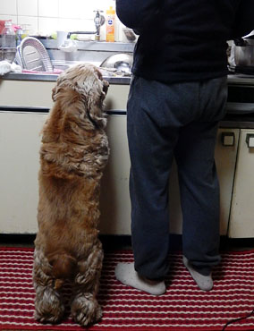 2017年6月16日(金) ある日、帰宅するとマヤがガビガビになっていた。どうしたんだろうと思っていたら、料理するヘボピーの足元を物欲しげにちょろちょろして、テーブルの上のボウルに入っただし汁をひっくり返してばしゃっ!と浴びたらしい。 ある日、帰宅すると玄関がライスシャワーが終わったあとの教会みたいになっていた。どうしたんだろうとあたりを見回してみれば、ぼろぼろになったビニール袋の残骸。そういえばスズメにやろうと米を入れたビニールがお散歩バッグに入ったままだった。 ある日、帰宅するとマヤがぐるるる……と唸りながらはしゃぎまわっていた。どうしたんだろうと部屋を調べると、ハッピーターンの残骸。上手に袋を食い破って丸々一袋、空っぽになっている。 食べられたくない人間と食べたい犬の間でこの14年間続くいたちごっこ。笑ってばかりはいられない。鍋いっぱいのカレーを盗み食いされた時にはわんわん病院に入院、15万円もの治療費を払ったんだから! それでもこのところマヤの食欲はだんだん落ちており、ご飯を食べるペースは遅く、キャベツなんかは残すようになってきた。