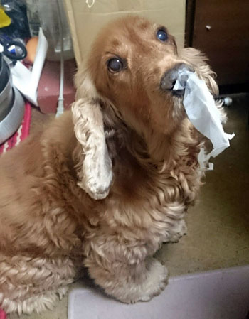 マヤの残りの犬生の間に「鼻ティッシュ」をカメラにおさめる私の夢は叶うのだろうか。もうこうなったらゴミ箱に肉汁のついたティッシュを仕込んで「やらせ写真」で手を打ってもいいかもしれないな。
