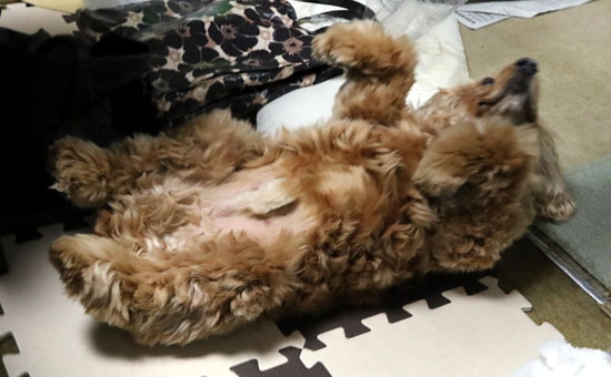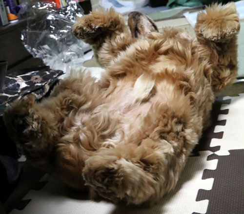 芸術点の高いへそ天。「どうです!ぼく、おもしろいでしょう!」と言いたげだ。