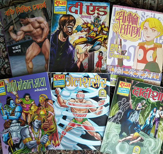 今朝。5年ぶりに家が身体を震わせ、ミシミシと不吉な音を立てた。 あ……。こういうの買ったこと、すっかり忘れてた……。 地震のパワーで呼び覚まされたのは、インドからやってきたスーパーヒーローズ。いや、この絵ヅラから推測するに、善と悪のボーダーは限りなく微妙ながら、少なくともアメコミを真似たインド製であることは確かだ。 デリーに行った際、古本屋の店先のじべたに山積みにされたこれら、さわると疥癬が移りそうな手触りそして匂いのブツを買いあさったものの、今見るとかなりキモい、キモすぎる。 トラベラーズハイで「わーっ面白い!サイトにアップするわ!」とはしゃぐ私を、「そんな本やめときなよ……」と止めたヘボピーは正しかった。それに、本をさわってから腕に虫さされのような赤みまで出てきたのですが。 どうしよう、このアメコミならぬインコミを!地震によって呼び起こされた印度の荒ぶるソウルたちを、シュレッダーにかけてお引き取り願うか否か、私はものすごく迷っている。 ![]() (乳輪部隊とバングラデシュの肉体改造ブックは一緒に落ちてきただけです) ![]() 単純に絵柄のキモさ?パクリの方向性が西洋コミックとは異質なせい?それともページの間に住んでいるカイカイ虫のせい? |