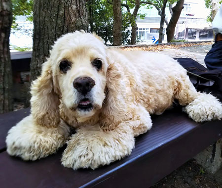 2019年10月22日(火) ![]() ある日会社のおつかいでいつもの役所に出かけた時に、道ばたのベンチで休んでいるお爺さんと、たっぷり太ったアメリカンコッカースパニエルに出会った。座っているだけでも大儀なのだろう、全身で息をしている老犬を見た瞬間に、あっ!あの時の犬だ!とすぐに分かった。 ![]() それは13,4年前に同じ場所で店の前に繋がれて主人を待っていた仔犬。チェックのシャツを着せられたふくふくの姿は「ぬいぐるみみたい」という表現がぴったりの愛らしさ。夢中でガラケーのカメラを向けたものだが、間違いなくあの犬だ。あの仔犬がまだ生きていて、こうしてちゃんと主人のお供をしているなんて! 10年以上の時間を一気に飛び越えたようなめまいを感じながらお爺さんに話しかけた。このワンちゃん、何歳になりましたか?長生きですね!仔犬の頃に見たことがあるんですが、まだこんなに元気でいたんですね。 自分の身近にある時、時間の流れはゆるやかに感じるものだが、こうしていきなり時をまたいで他の人生、他の犬生を目にすると、時間はなんと素早く飛びすさってゆくものだろう、と驚きを覚える。そして「粛々と生きる営み」に対する愛しさで息が詰まりそうになるのだ。 残念なことに二人に出会った日には仔犬時代の写真を持っていなくて、お爺さんに愛犬の記憶を甦らせてあげることができなかった。また会えるかもしれないと写真を移したスマホを持って、同じ場所を通るたびにベンチに目をやるのだが、あれから3ヶ月、再会の願いは叶っていない。 老犬にとっての3ヶ月は1年にも等しいものだ。ひょっとすると散歩に出られないくらい足が萎えてしまったのかもしれないし、すでに犬生を終えたのかもしれない。 |