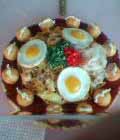 このように、己のツラの皮はせいぜいぶ厚いと思っていたが、意外にナイーブな自分を発見した京都の夜であった。 ←どれだけ炭水化物を摂取させれば気が済むんだ?京都のお好み焼き屋にて採取。ざぶとんのようなお好み焼きの上に、大盛り焼きそばとたこ焼き12個と目玉焼きが3枚乗っている。食欲を極限まで失せさせるディスプレイだ。 |
