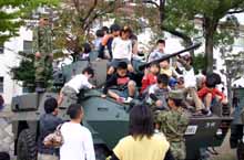 ガンメタや深緑色したビューティホーすぎる装備品たちと、どんなブサイクでもカッコマンに見えちゃうマジカルユニフォーム・迷彩服を身にまとった男ども(たまに女)に囲まれて、朝の10時から午後3時まで息継ぎもできずアップアップ、すっかり平常心を失った一日であった。 だが、阪神大震災以来身近で触れ合うことがなかった迷彩ワールドに、遮二無二萌えるばかりだった己に対して反省する面も多い。 はぁぁ〜・・・あの時そばでヒマソーにしてたヘリコの操縦士に突撃インタビューすればよかったなぁとか、銃器の説明をしてたプリキューな子にもっと色々ヨイショすればよかったとか、うじうじクヨクヨ後悔してる。 これが古代エジプトワールドならば 「自分が一体何を知りたいのか」程度は分かっているが、ネタがミリタリになると私はしょせんははまったばかりのド初心者。質問とは基礎知識がないと発せないものだと痛感した一日であった。よってただいま独り反省会を絶賛開催中。 →さすが「ジープも救急車も消防車もなんでも揃う」自衛隊。救急車も自前の深緑色。空砲の音に心臓麻痺を起こしたご老人とか、萌えの余り失神したオタクはこの車で搬送されるのだ。 ・・・とはいえ、高射砲が空砲をぶっぱなしたり、レンジャーがゲリラ鎮圧のパフォーマンスを見せてくれたり、ニキビだらけの若い隊員が屋台でイカ焼いてたりと、駐屯地祭が目いっぱい楽しませてくれる催しであるのには変わりがない。
