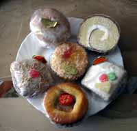 高架下で営業続けて○○年、R製菓のケーキもどき、一ケ90円也。こんなおおざっぱなケーキ、ヘンゼルとグレーテルのお菓子の家でしか見たことねぇ!(汗) 「スイーツはべつばらなのv」という頼もしいお嬢様でも、2つ食べるとギブアップしそうなこのボリューム、そして口内の唾液をすべて奪い尽くすパサパサ感に、さしものチープ菓子好きな私も完・全・敗・北。 |