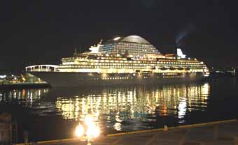 3月5日(月) 突然の豪華客船との遭遇でバタバタ走り回ったから?それとも週末の母との遭遇で、びっくらこくほど意志疎通がむつかしくなったことにガックシきたから? 先生曰く体がひどくねじれていたみたいで、治療を受けたら痛みは多少治まったものの、季節的に油断は禁物だから、しばらく詰めて行かなきゃなんないことになったよ。ぅおおお……この調子では、2007年度もまたしても確定申告でバッチリ医療費控除の対象だね……(※) ※・・・世帯まとめて(←ここ重要)交通費込みで10万円以上の医療費は控除の対象となるので、まだ確定申告してないヒトは3月15日までに税務署へGO! 気温が徐々に上昇してスギ花粉の舞い散るこのシーズンは、一年で一番体のバランスが狂う時期とのこと。 人間、生きてるからには絶対に左右対称には動けないから、腰痛や首痛の原因を取り除くのは容易じゃないそうだが、少なくとも「痛いときには無理をしない」「痛いところを指で押さない」「寝過ぎない」「風呂をシャワーで済ませない」「風呂に長く入りすぎない」ってあたりは注意しなきゃならないみたい。 ギックリ腰やむち打ちは「オレも年だなぁ、ワハハハ」なーんてナメてると、一生苦しむ辛い症状と化すので、心当たりのある方はいろんな整骨院に行ってみて、一刻も早く信頼できるお医者さんを見つけましょうね。 この日の昼、ヘボピーから「夜8時に外国客船が音楽隊の演奏で出航するそうだから、一緒に見に行かへん?」というお気楽ゴクラクなオタクメールが入っていた。 でも、息せききって港に着いてガックリ。言っちゃ悪いがこのお船、完全に名前負けだね……いつもこのターミナルに停泊している天津行きのボロ船と、規模的にはさして変わらない。はぁあぁ……あわててソンした。 「確かめたけど見に行くほどのもんじゃないな」とヘボピーにメールして会社に戻り、仕事を終えてからはまっしぐらでジムへ……花の金曜日にジムを埋め尽くすヒマなマッチョどもに混じって筋トレしてきた。 で、ジム後は地元のコッテリ系ラーメンの雄・「もっこす」でさっき消費したカロリーを台無しにしたのみならず、さらに800キロカロリーほど追加で摂取してから、気休めに猛烈な速歩で歩いて、区内で唯一ウォートランの設置を確認しているゲーセンへ……と、私はこのように多忙な人間なのだ、ってウソつきすぎ。 昼間のチャリ漕ぎがきいて、クレイジー教官の真骨頂がおがめる6面までは到達する気力を欠いたため、3面で許して頂いてトボトボ帰宅しようとしたところへ……うおぉおっ!!?目の前にまばゆく光り輝く女神の姿が! それが彼女、「飛鳥II」。 それからはまたしてもバタバタ再開である。 しょーがないからカメラを取りに家に帰った。区内の端っこから端っこまで、走り出す一歩手前の競歩のスピードにて、前のめりに歩いて45分。 ハァハァ言いながら家に着いたのが10時半。 だが、カメラを抱えて華麗にチャリにまたがった私は、5秒後に顔面蒼白になっていた。 昨日は何ともなかったのに、昼の間に前輪の空気が抜けちゃったみたい。そして不幸にして空気入れは会社に置いている。 いや、「NEVER・NEVER・NEVERサレンダー!」と阪神タイガースも言うとるではないか!逃げちゃダメだ!と碇シンジも……(以下略) 残り時間は20分。華麗なるウイリーを披露する曲乗りバイクをイメージしつつ、限りなく重心を後部に移動させると、完璧に空気が抜けてペコペコと哀れな悲鳴を上げる前輪を完全無視、ロードトゥヘルをまっしぐら。 そして港に到着したのは11時2分前。 だが何か妙だ。11時10分、20分……11時半になってもアスカさんはびくともせず、出航の「しゅ」の字の気配も見えてこないじゃないか。 どうやらまたやってしまったらしい……よく考えると夜11時なら23時と表示するよね、フツー。 朝9時にネット予約した飛行機に遅刻しそうになって、タクシー代4千円はたいて空港カウンターに滑り込みセーフしたら、「お客様のお席は夜9時の予約になっておりますが……」なんて言われるこのパターンの勘違いが、私にはたいそう多い。 ならこんなに泡食わなくても、地下鉄か何かでゆっくり来れば良かったなぁ。そう思ったとたん、ウイリー(気持ち的には)でチャリ漕いだ疲れにドッと襲われた。 帰路はもうウイリーする気力はない。自転車は重く、タイヤはペコペコだ。私はコンビニでハーフボトルの赤ワインを買うと、それをラッパ飲みしながら、やさぐれ気分で人もまばらな夜更けの港をあとにしたのである。