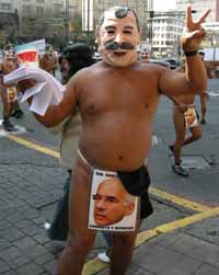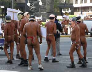 2008年12月3日(水) 文章書く時間と気力に欠けるので、取りあえず写真でもアップしときまちゅ。 ![]() 東京から夜行バスで帰ってきて半分眠りながらメールチェックしたところ、いきなり添付されていたこの写真・・・・・・。魅惑の褐色ケツパレードに睡魔も一発で吹っ飛んだ。提供者:S崎氏、撮影場所:メキシコ市内。コンセプトはNotゲイパレード、But政治的デモンストレーションだそうだ。