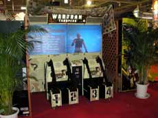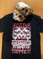 これもデザインフェスタにて。マシンガン・エチケットのシャツ&キャップ。いい年こいて迷彩&鉄条網&ドクロ模様・・・いいかげん落ち着け自分。