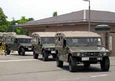 ゲーセンの隣は駐屯地。ウォートランがまだ残っているのはそんな立地のせいかもしれない。自衛隊マニアのヘボピーに「向かいが駐屯地!」とメールすると、遠くからでもいいから写真を撮ってこいとの指令が出たので敷地の回りをウロウロしていると、特殊車輌のおでかけに遭遇。