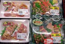 スーパー巡りは旅の楽しみのひとつ。地元ではまず見ないものを発見すると得した気分。さすが地鶏の本場宮崎の隣県だけあって、鹿児島ではナチュラルにとりさしが並んでいた。こんなバラエティー豊かな盛りが380円の二割引なんて、K市民からすればアンビリーバブル!