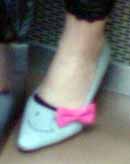 電車で向かい合った席の人がはいていたパンプス。メールを打つフリしてこそこそ盗撮したせいでピンぼけだけど、ニコニコ笑ってるのはお分かりだろう。