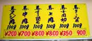 写真左は関東や東北ではさして珍しくないそうだが、関西人にとってはびっくりものの「馬肉専門店」の価格表。グラム200円のスジ肉から900円のさしみ用までお好きなウマをお選び下さい。